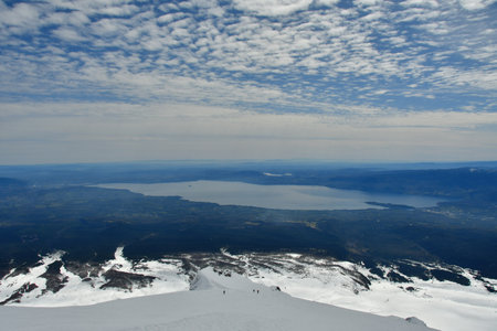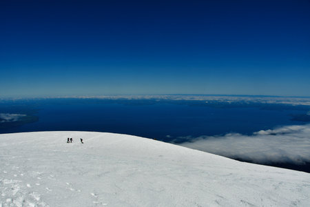 View from Villarrica Vulcano Chile Top touring ski ascent blue sky. High quality photo