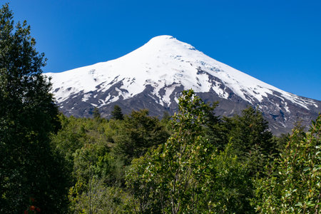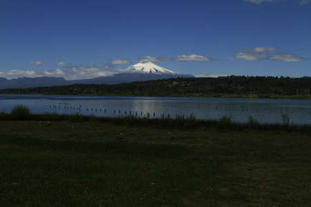 Volcano Osorno in national park Vicente Perez Rosales, Chile. Copy space for text