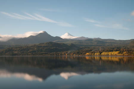 Lake, mountains and volcano beautiful landscape, Chile, Patagonia, South America