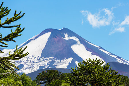 View of slopes and snow top of Lanin Volcano, Patagonia, Argentina, Chile, Andes