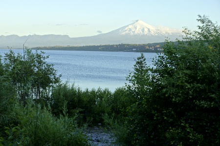 Rinihue lake and Mocho-Choshuenco national reserve as background, Chile