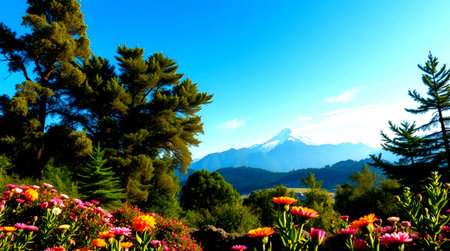 Beautiful view of Mt. Fuji with flowers in spring season.