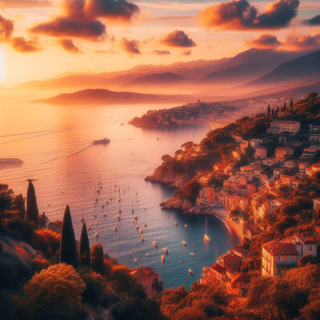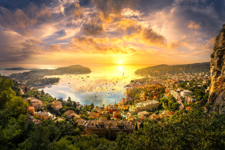 A vibrant view of Villefranche-sur-Mer on the French Riviera at sunset, France