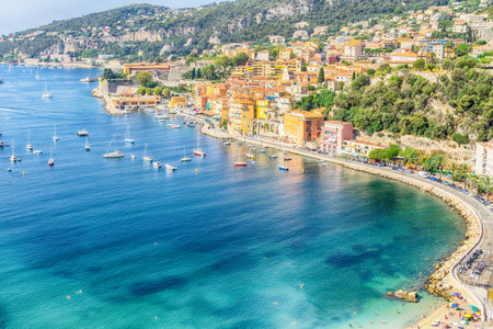French Riviera coast with medieval town Villefranche sur Mer, Nice region, France
