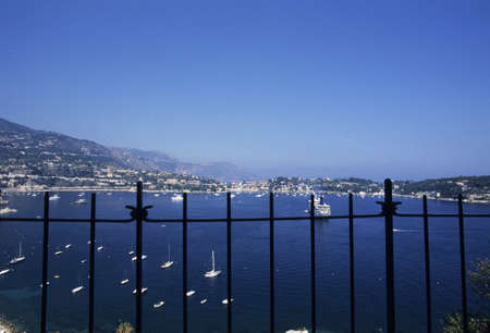 View of the bay of Villefranche-sur-Mer from the lower coastal road (Basse Corniche), French Riviera