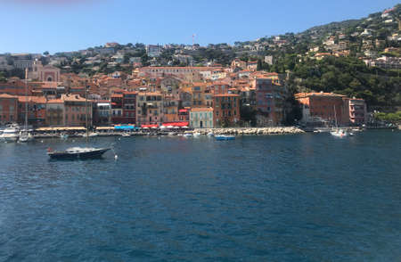 The colorful town of Villefranche, France on the Mediterranean Sea