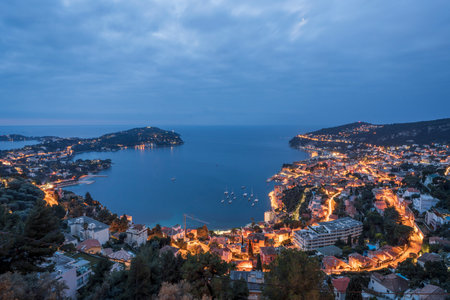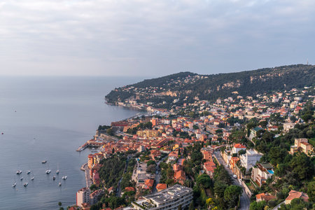 Evening on the Cote d'Azur, France. Mediterranean city and commune in the southeast of France in the Provence region of Villefranche-sur-Mer.