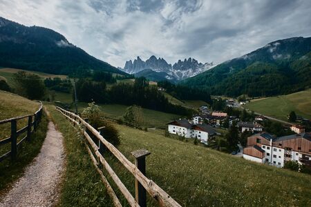 The landscape around Santa Magdalena Village. Located in Val di Funes, Dolomites area, Italy.
