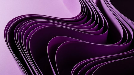 Layers of deep purple paper are folded and curved into flowing waves, creating a dramatic abstract composition with striking shadows and highlights.