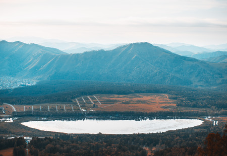 Aerial view of the river in the Altai mountains, Russia