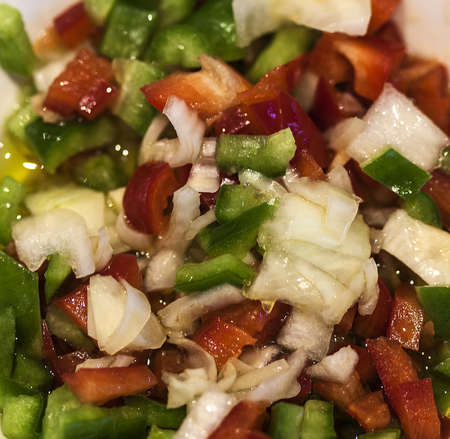Healthy eating concept. Fresh vegetable salad with peppers, tomatoes and cucumbers, organic food, closeup