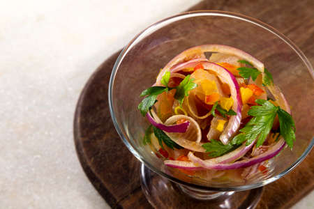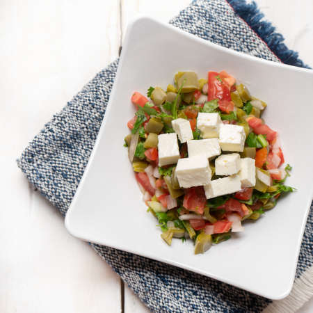 Turkish Shepards Salad with cucumber, tomato, red onion, pepper, parsley (Turkish name; kasik salad or coban salad )