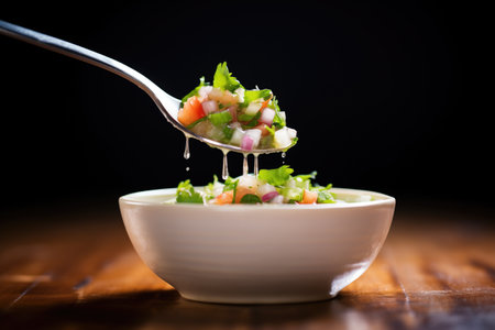 ladling fresh salsa on top of a chicken fajita, created with generative ai