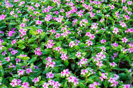 The purple Catharanthus roseus are blooming in the garden. selective focus of pink flowers periwinkle or Catharanthus roseus