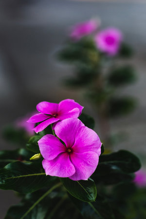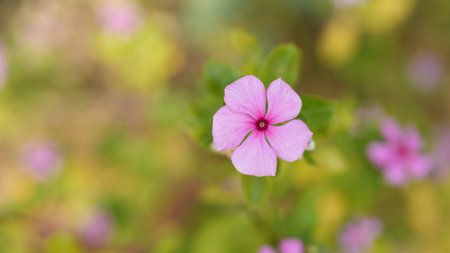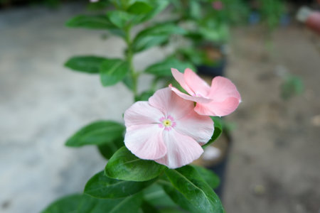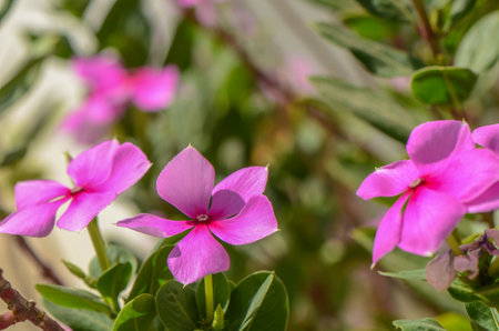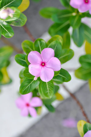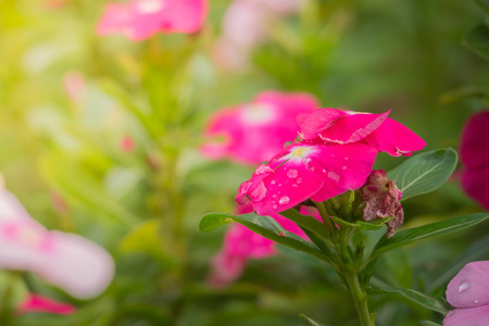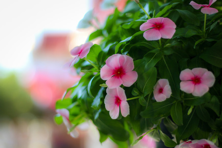 pink Catharanthus roseus commonly known as the madagascar in blur soft