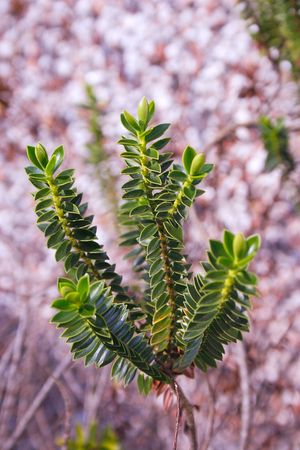 native Australian grevillea plant with flowers about to bloom shot at shallow depth of field