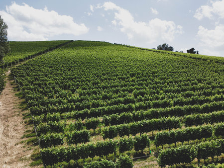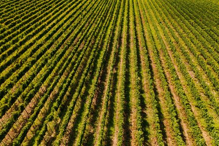 Vineyard agrecultural meadow at day. Narure aerial view.