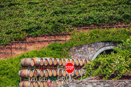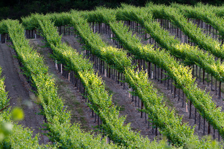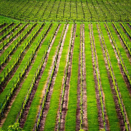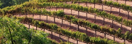 vineyard in Napa Valley California, with perfect rows of healthy grape vines