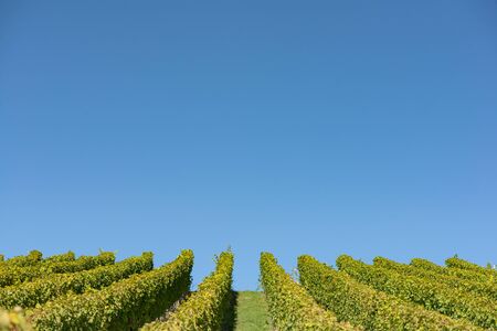 Vineyard with cloudless blue sky in vertical format