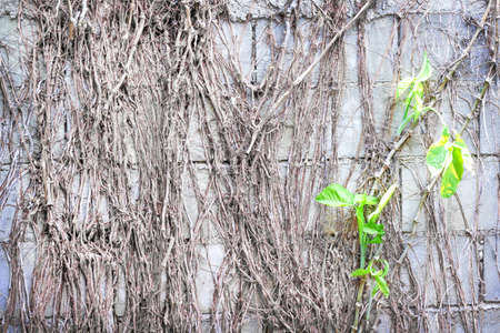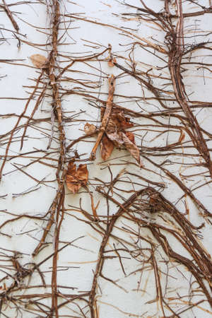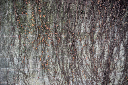 Background texture. Dry vine on aged gray concrete wall, copy space