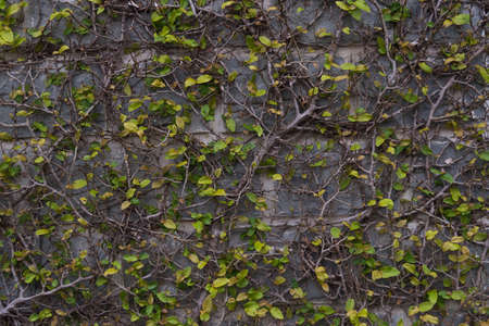 green climbing fig plant (creeping fig or ficus pumila) growing and cover on cement wall