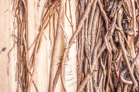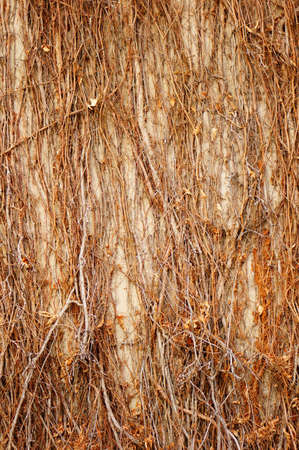 Creeping Fig Vines Growing on Weathered Wood Wall Background