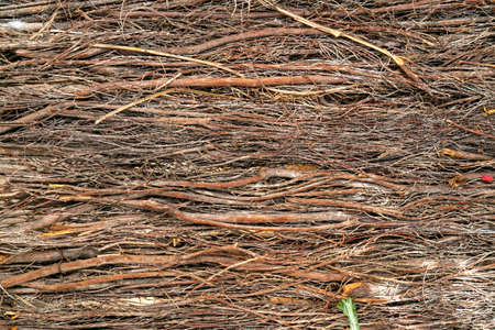 Hedge of dry vine branches, nature background. Abstract of dry toned twigs on the fence