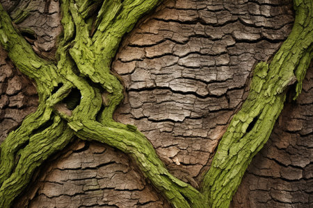 Artistic vegetative background tree trunk with textured bark on black background close-up macro photography
