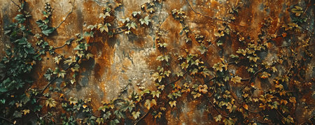 Rustic vine-covered wall background with natural texture and green and brown hues: Natural and inviting, ideal for a rustic and organic ambiance