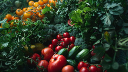 Fresh and vibrant assortment of colorful vegetables including tomatoes, peppers, and broccoli.