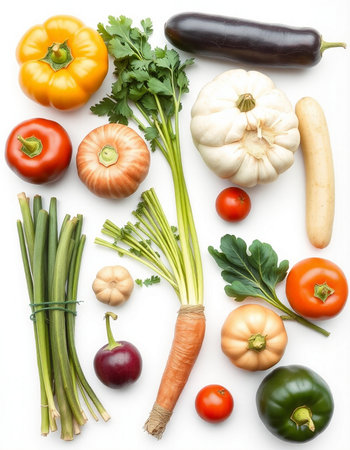 A stunning arrangement of fresh organic vegetables showcasing vibrant colors and textures. Perfect for promoting healthy eating and culinary creativity.