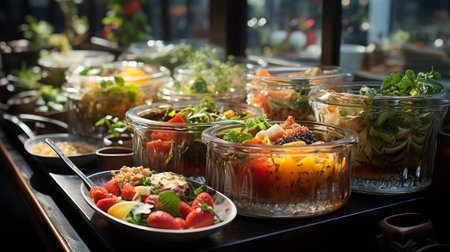 Salad bar buffet from organic farm in plant based concept. Generative AI.