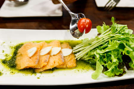 Snow fish fillet steak with black olive - Italian restaurant