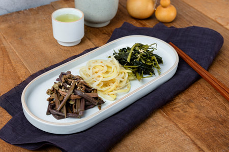 Concept of Japanese cuisine, Chuka salad, top view