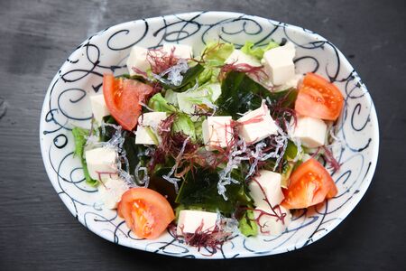 Dish of cold tofu wagame salad.