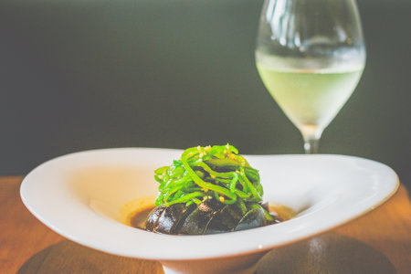 Beautiful and tasty food on a plate, exquisite dish, creative restaurant meal concept
