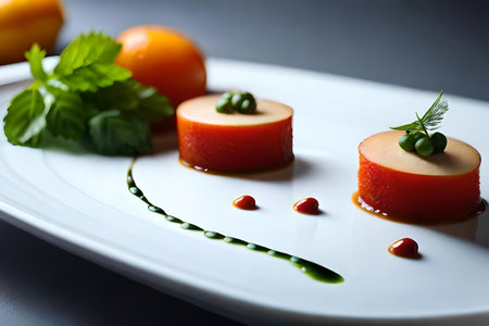 Ai generated illustration fine dining dessert plate with fresh ingredients served on restaurant