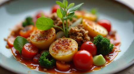 plate of fresh, local produce with zero-waste cooking techniques, created with generative ai