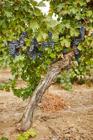 Red bunch of grapes in the vineyard, spain. High quality photo