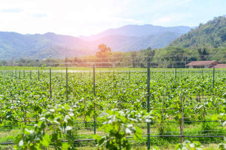 Vineyard villa rural landscape with wine grapes, ideal for farm banner on sunny day