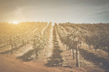 Vineyard with Blue Sky in Autumn with Vintage Film Style Filter