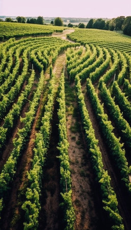 vineyards landscape on the hill from top with drone