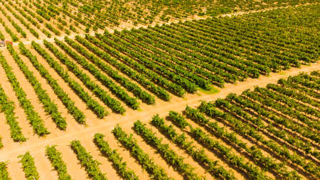 Countryside beautiful farms and vineyards beautiful aerial view. Agriculture plantation grapes vine vineyard