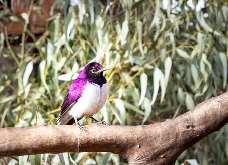Full length portrait of violet-backed starling or Cinnyricinclus leucogaster, also known as plum-colored starling or amethyst starling.