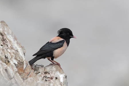 Rose-coloured starling, Sturnus roseus, single male on rock, Bulgaria