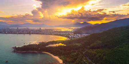 panoramic landscape scenery of Danang city, Vietnam. along coastline at Son Tra peninsula
