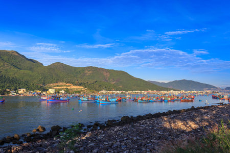 January 24, 2023: panoramic view of Vinh Luong fishing port, Nha Trang city, Khanh Hoa province, Vietnam