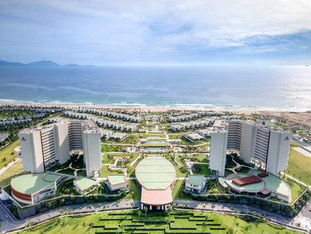 5-star Alma resort in Cam Ranh district, Khanh Hoa province, Vietnam-October 8, 2020: Overview of Alma Vietnam resort located on the famous Bai Dai beach of Cam Ranh district, province Khanh Hoa, VN