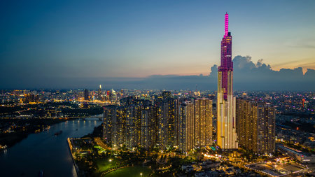 Beautiful aerial view of tallest building in Ho Chi Minh city