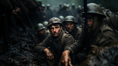 Historical depiction of soldiers in trenches during the World War I era